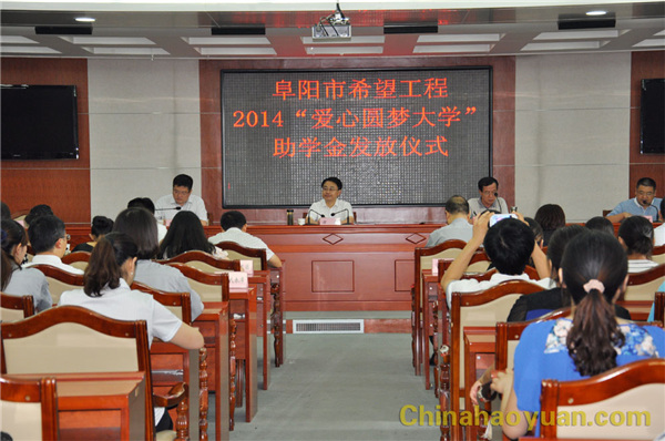 8月21日,阜阳团市委举行2014年希望工程“爱心圆梦大学”助学金发放仪式,阜阳市副市长方旭出席仪式。