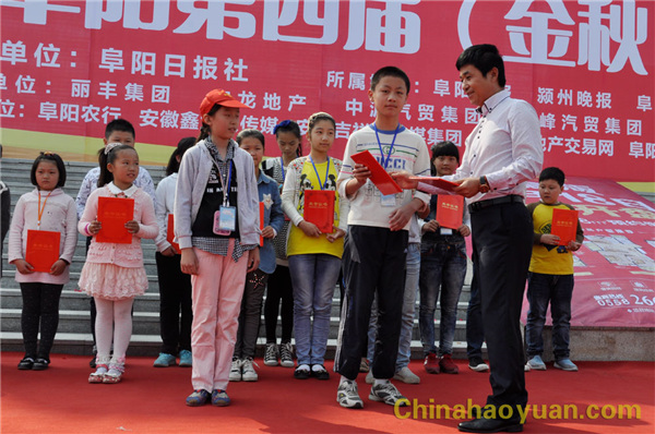 10月18上午,“昊源杯”小记者写作、摄影大赛评选颁奖活动,在市体育中心举行。阜阳日报社党委书记、社长张洪、昊源公司工会副主席戚伟等出席颁奖仪式,并为获奖小记者颁奖。