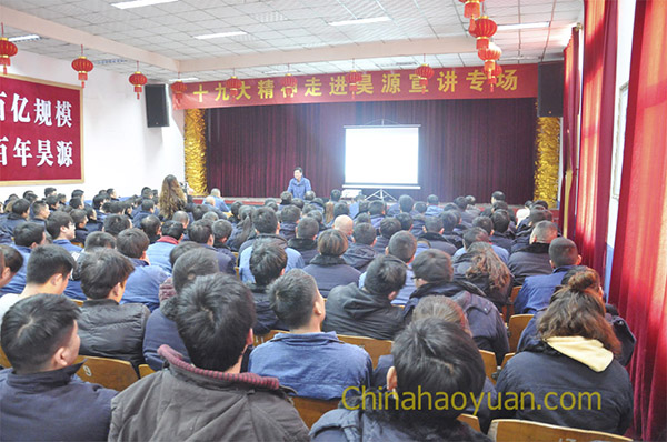 为全面学习宣传贯彻党的十九大精神,深刻领会习近平新时代中国特色社会主义思想和基本方略,深刻把握新论断、新特点、新目的、新要求,12月10日下午,“十九大精神走进昊源宣讲专场”在公司礼堂隆重举行。来自生产车间、机关科室的400多名员工参加宣讲学习。