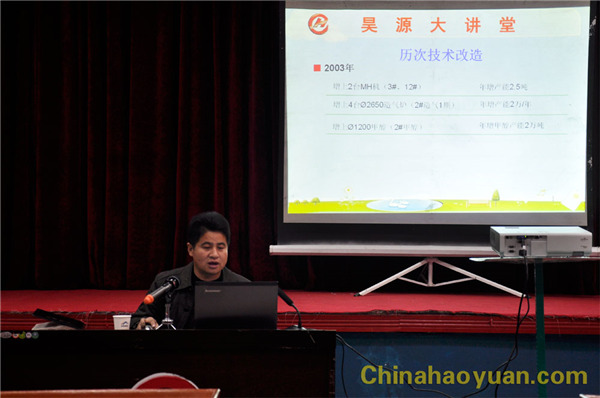 11月21日,昊源大讲堂正式开讲。昊源公司常务副总经理凡殿才以《昊源化工技术进步历程和生产主管的几点心得体会》为题作精彩演讲。