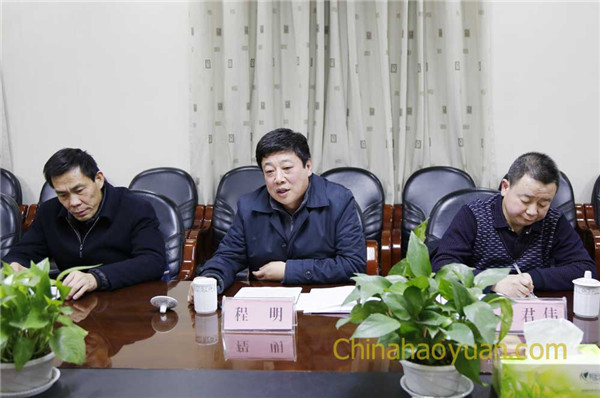 公司党委副书记高玉磊向程明一行汇报了昊源公司2017年度生产经营、安全环保、园区项目建设进度、经营管理层激励计划、民生保障及党建工作等情况,对工作中存在的问题和不足进行总结、分析,并对2018年度昊源公司工作计划作简要汇报。