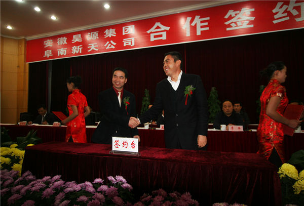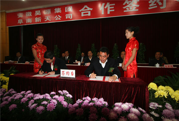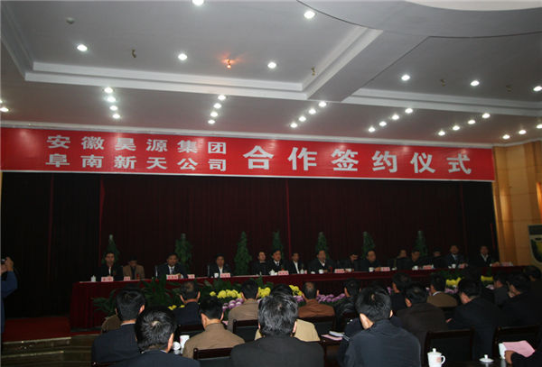 2008年11月5日上午,在阜南县南山宾馆,安徽昊源化工集团有限公司与阜南新天化工股份有限公司举行了隆重的合资合作签约仪式。