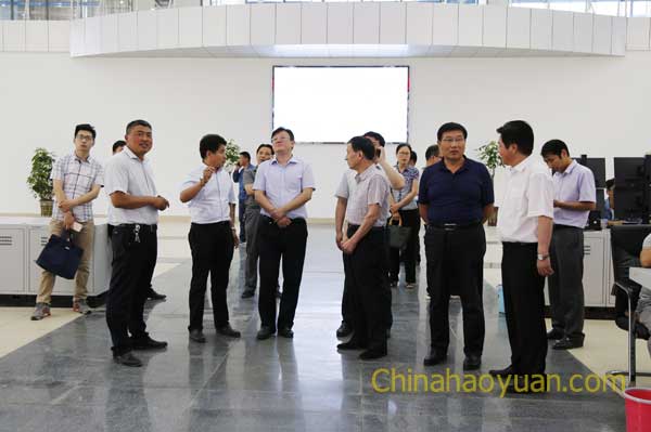 李红一行深入昊源园区现场实地查看了项目建设情况,在凡殿才的陪同下,来到园区中心控制室,凡殿才就昊源的工业规模、园区项目规划、建设进展及产品市场行情和前景进行了汇报。