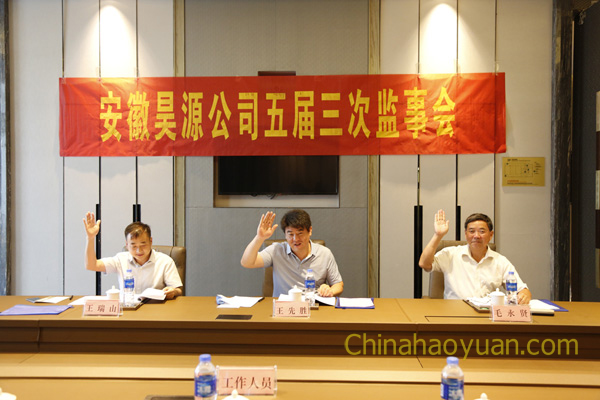 2018年6月22日,昊源公司五届三次监事会在阜阳胜利召开。会议由监事会主席王先胜主持,公司监事毛永贤、王瑞山出席会议。