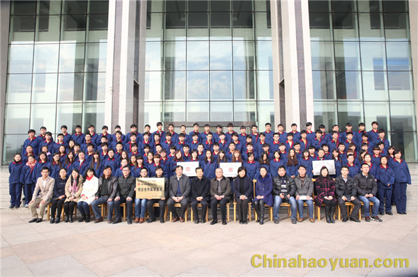 最后,昊源集团、安徽职业技术学院双方代表、安徽职业技术学院昊源班学生代表在图书馆广场合影留念。