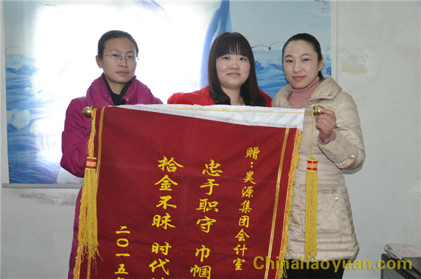 通过了解后才知道,2月2日下午快下班时,刚忙完工作的公司财务处出纳室人员李雪在整理领款窗口的物品时,发现了一沓人民币,后经清点后是10000元。公司财务处出纳室人员李雪、高静静、梁红丽三位员工立即查询当天下午领款人员记录,但是,由于领款人员较多,且数额都达10000元以上,无法确认失主。她们决定,等第二天早上上班时联系所有领款客户,逐一核实。2月3日早上刚上班,一名客户焦急的来到出纳室,原来是客户当时领款17000多元,领款签字后拿了7000多元匆忙走了,而把一沓10000元现金遗漏在领款窗口,到家后才发现。李雪等三位员工认真核对失主信息、领款记录等,确认无误后,将现金当场还给了失主。失主非常感动,立即拿出几百元现金表示感谢,被李雪等三位员工拒绝,她们表示拾金不昧是应该的,昊源集团每位员工都会这样做的。