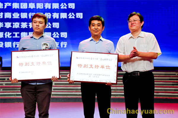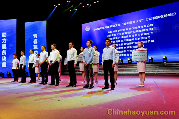 会上,共青团阜阳市委员会、阜阳市希望工程办公室授于安徽昊源化工集团有限公司阜阳市2018年希望工程“爱心圆梦大学”特别支持单位,戚伟代表昊源集团领取奖牌。