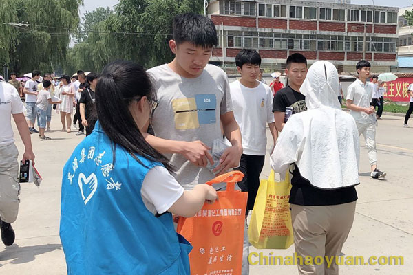 十年寒窗苦读,一朝金榜题名。一年一度的高考如期而至,为助力莘莘学子圆梦,给广大考生营造文明和谐、安全畅通、舒心安静的考试环境,6月7日至8日,昊源集团志愿者服务队和兄弟志愿者队伍,联合发起“助力高考——志愿者在行动”志愿服务活动。活动组织20多名志愿者,在阜阳颍东城郊中学考点搭建遮阳帐篷,设置志愿服务岗,应急医疗站,为考生免费提供2B铅笔、橡皮、削笔刀等考试文具,为家长提供纯净水、小扇子、小板凳等防暑和休息用品,以及风油精、藿香正气水等应急药品。志愿者同家长交流陪考技巧、帮助考生缓解考试压力。志愿者们不仅为考生服务周全,还为送考家长和爱心司机热情服务。