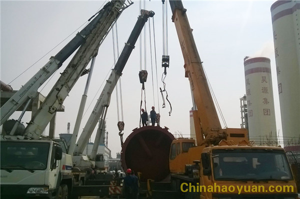 本次吊装作业任务由公司化机公司和化工车间共同承担。为了完成该设备的吊装,化机公司动用了四台吊车、1台叉车以及数十名吊装工人,化工车间维修工也倾力配合。
