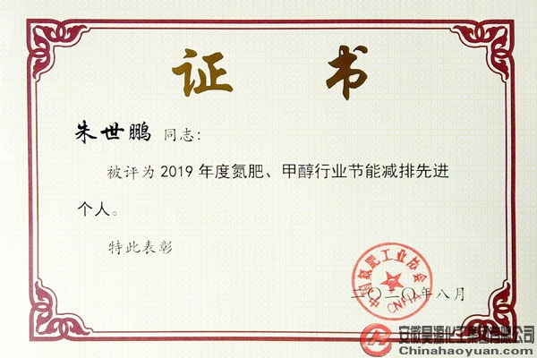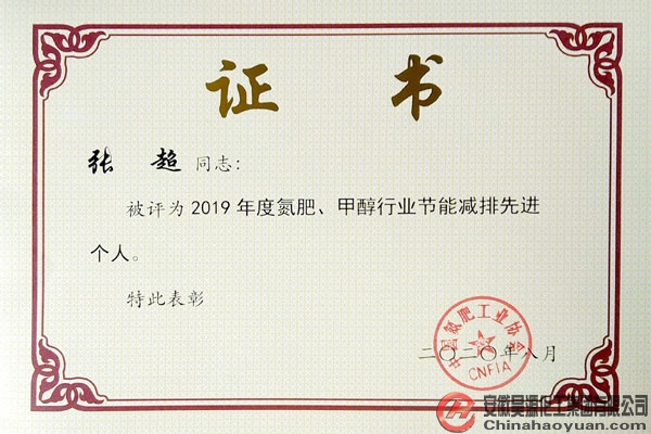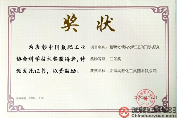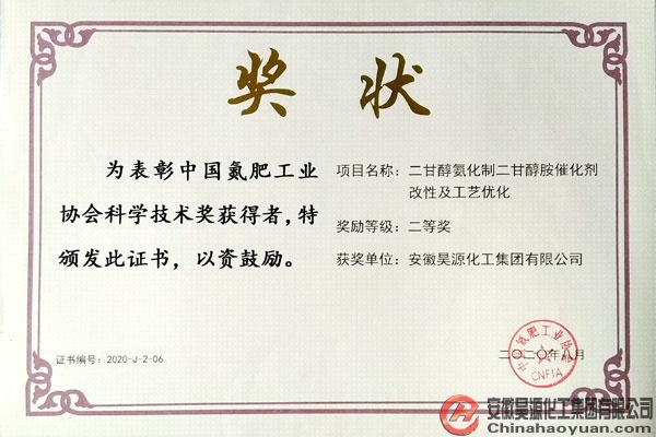 会上,昊源公司被评为“2019年度氮肥、甲醇行业节能减排先进单位”,公司的“二甘醇氨化制二甘醇胺工艺优化与提升”和“低能耗浓盐水分质结晶零排放装置研发及产业化”项目荣获中国氮肥工业协会科学技术奖二等奖,“液体车用尿素技术研究及产业化”和“粗甲醇分离纯化新工艺的开发与研究”项目荣获中国氮肥工业协会科学技术奖三等奖,张超、朱世朋被评为“2019年度氮肥、甲醇行业节能减排先进个人”。