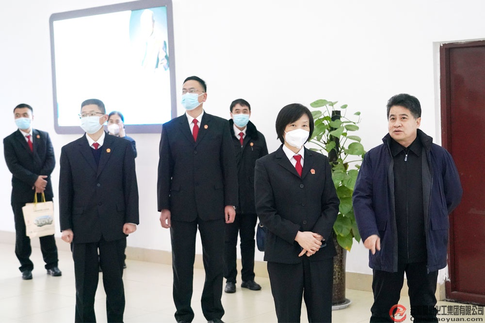 2月9日,阜阳中院党组书记、院长苏勇,颍东法院党组书记、院长胡龙汉一行到昊源园区开展“送法入企”调研走访活动,公司党委书记、董事长凡殿才,总经理助理潘家成及相关科室人员陪同。