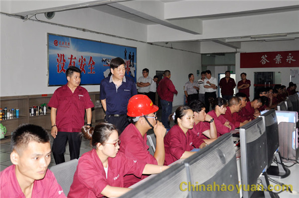 王建武一行在昊源公司领导陪同下,来到昊源公司航天炉主控室,察看航天炉系统生产运行情况,并向高温酷暑下坚持生产操作的员工表示慰问。