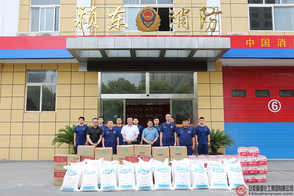 7月28日上午,昊源公司党委书记、董事长凡殿才,常务副总经理高明林等一行先后来到阜阳市消防支队、颍东区消防大队慰问消防指战员,为他们送去米、面粉、食用油、矿泉水等慰问品,向奋斗在执勤一线的消防队员致以诚挚的问候。