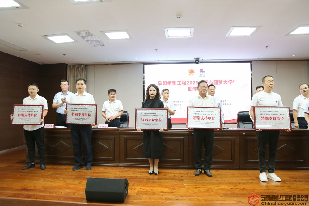 9月1日上午,阜阳市希望工程2023“爱心圆梦大学”奖牌发放仪式在市政府会议室举行,昊源公司被授予“爱心圆梦大学特别支持单位”称号,公司团委书记朱梅代表公司领取奖牌。