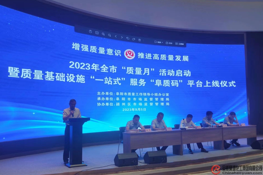 9月5日上午,由市质量工作领导小组办公室主办、市场监管局承办的阜阳市2023年“质量月”活动启动仪式,在软件产业园二楼多媒体会议厅举行。公司副总经理田怀广代表昊源公司出席活动。