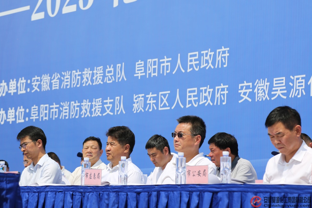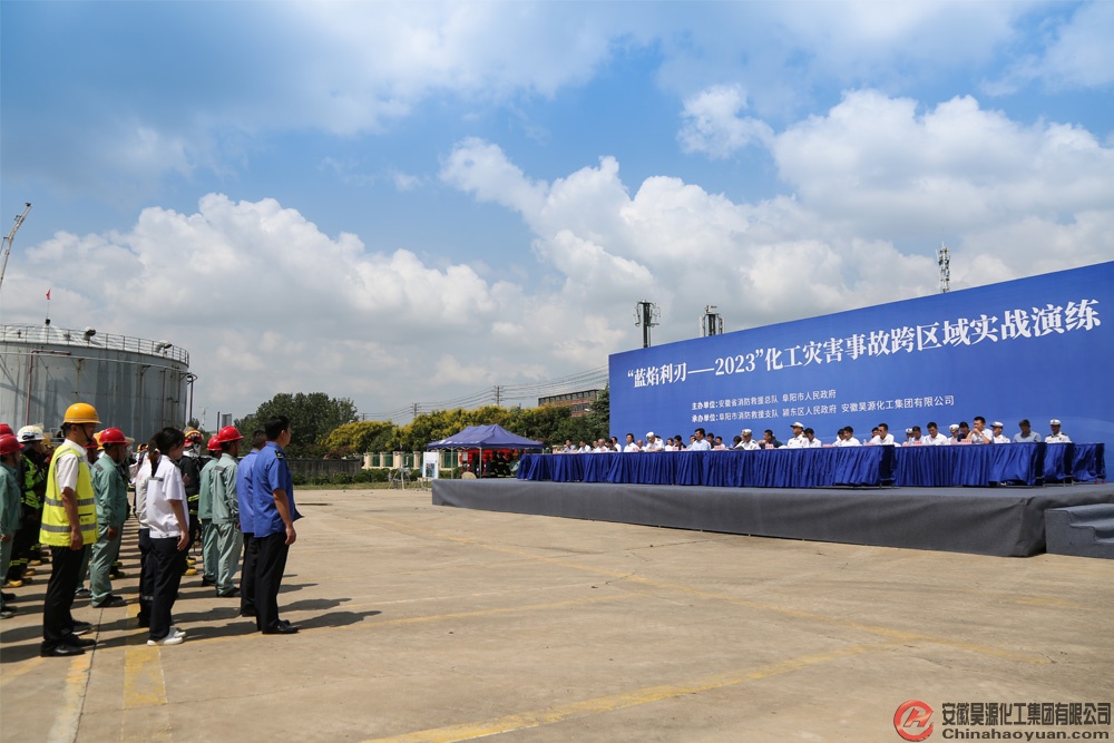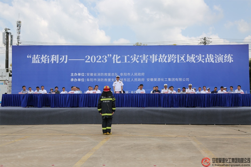 为检验全省消防救援队伍跨区域联合作战和与地方应急联动力量协调处置能力,提升队伍应对化工灾害事故处置的实战水平,9月14日,由安徽省消防救援总队、阜阳市人民政府主办,阜阳市消防救援支队、颍东区人民政府,安徽昊源化工集团有限公司承办的“蓝焰利刃--2023”化工灾害事故跨区域实战演练在昊源公司老厂停产装置区开展。阜阳市委副书记、市长胡明文,安徽省消防救援总队长李斌、副总队长王其堪,阜阳市副市长、公安局长张晓东,阜阳市消防支队政委孟向东,市政府法制办党组书记、主任朱敬田,昊源公司党委书记、董事长凡殿才出席活动并观摩演练。公司副总经理张海生参加演练应急救援指挥。