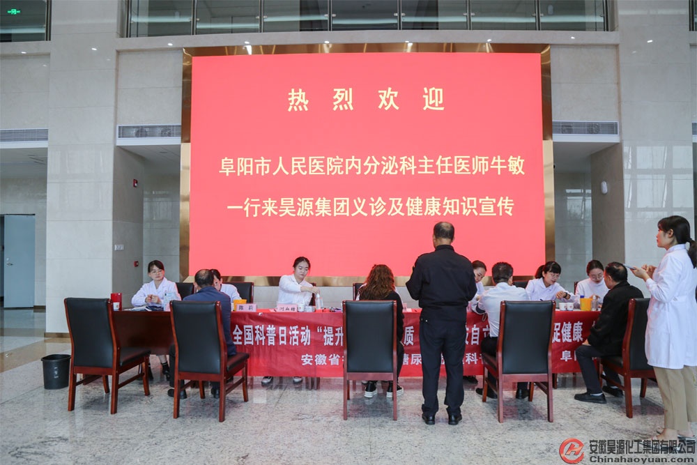 为进一步普及健康知识,9月23日上午,公司工会特邀阜阳市人民医院内分泌科主任医师牛敏一行8人,在昊源研发中心一楼大厅免费义诊。