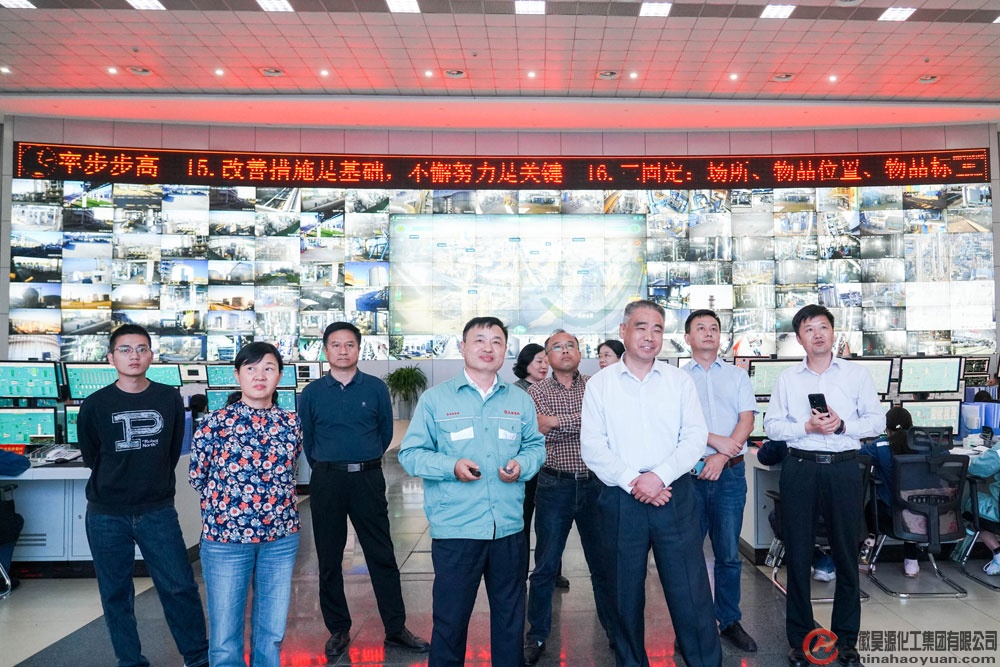 在生产控制中心,吴珍汉向梁永勤一行详细汇报了昊源公司园区项目建设、运行、规划、产品产能及企业发展等情况,就绿色发展、清洁发展、安全发展及减污降碳相关事宜进行汇报。
