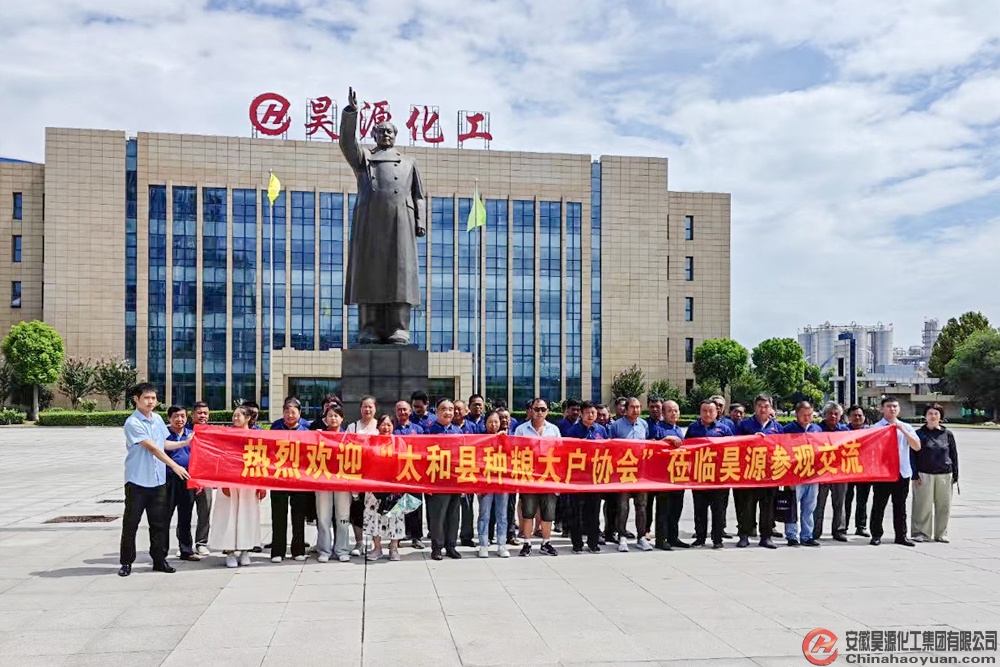 8月2日,全国人大代表、安徽省麦王徐淙祥携太和县种粮大户协会会员莅临昊源公司参观交流,洽谈尿素、复合肥合作事宜,公司副总经理贾健、总经理助理孙凯旋及化肥销售公司人员陪同。