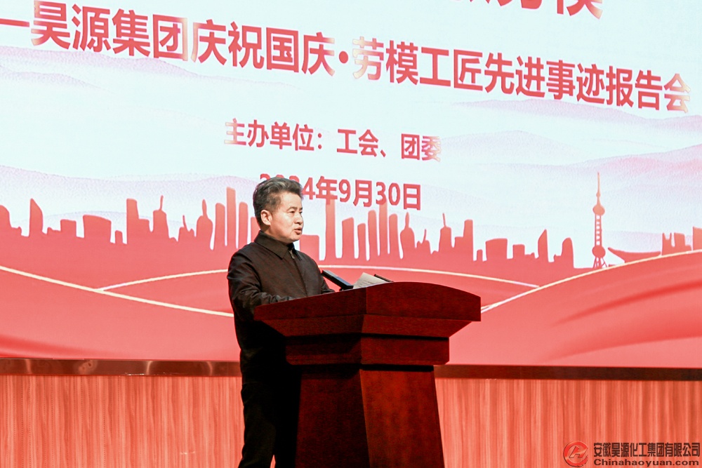 值此国庆佳节之际,为弘扬劳模工匠精神,树立先进典范,激发员工工作热情和创新精神,9月30日,昊源公司在研发中心一楼报告厅隆重召开庆祝国庆•劳模工匠先进事迹报告会。公司党委书记、董事长凡殿才出席报告会并致辞,公司常务副总经理高明林等领导出席报告会,各单位员工代表参加会议。