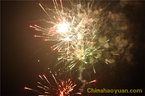 在烟花燃放现场,一朵朵礼花在昊源上空绽放。天空中,五彩缤纷的礼花弹,璀璨夺目。各式礼花姹紫嫣红、群芳吐艳,一片辉煌。正在行走中的人们驻足观看,观赏的人群不时发出赞叹声。璀璨的烟火宛若一个个动人的音符,在夜空里演奏出一曲绚丽的乐章。