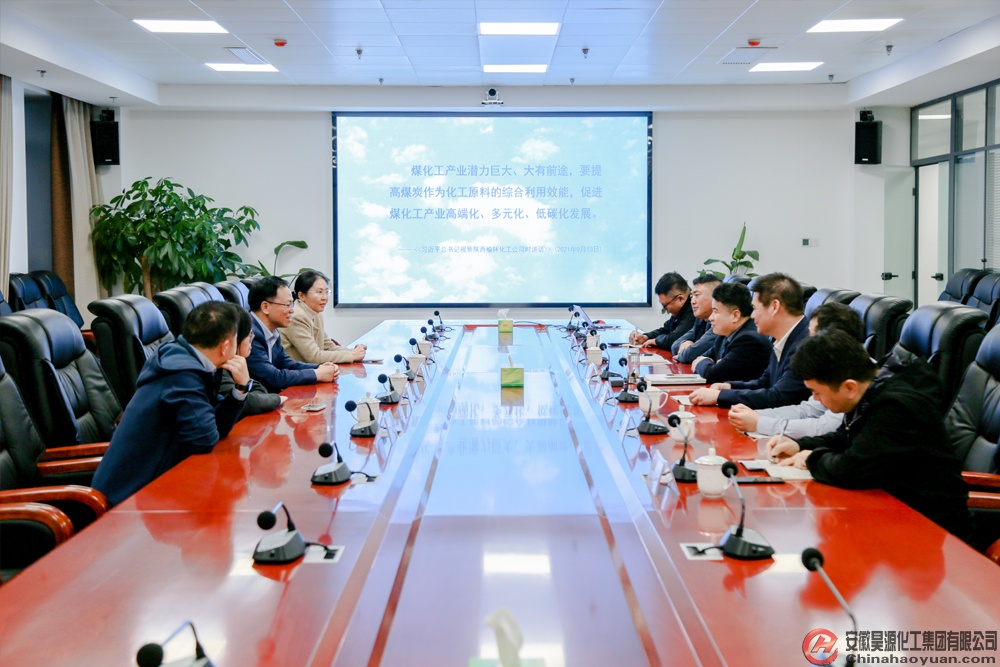凡殿才向马新宾一行详细介绍昊源公司项目建设、产品产能、清洁生产及绿色发展等情况。近年来,昊源公司积极响应国家政策,启动退城入园项目规划建设,实施转型升级战略,在传统化工产业的基础上大力发展化工新材料、高端化学品、精细化工品等新型化工产业,走产业集聚、节能高效、绿色低碳、智能制造的可持续发展道路。目前,昊源公司正处于转型升级战略发展的冲刺期,希望与天津大学在创新发展、科技成果转化、高层次人才培养等方面积极探索,加强战略合作,以推动企业高质量发展。