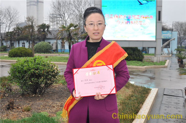 安徽昊源化工集团有限公司职工滑敏被阜阳市政府授予“三八红旗手”荣誉称号。