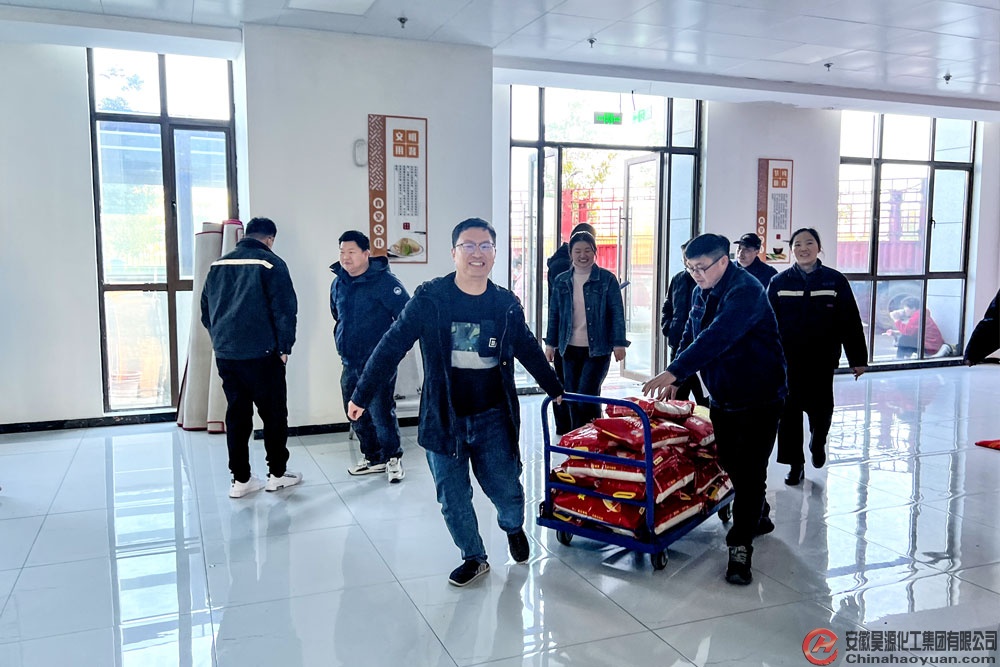 祥龙回首辞旧岁,金蛇起舞迎新春。值此新春佳节即将来临之际,为感谢全体员工一年来为公司的辛勤付出和贡献,表达公司对广大员工的浓浓关爱和新春祝福,昊源公司为全体员工发放米、面、油、水果等福利物品。
