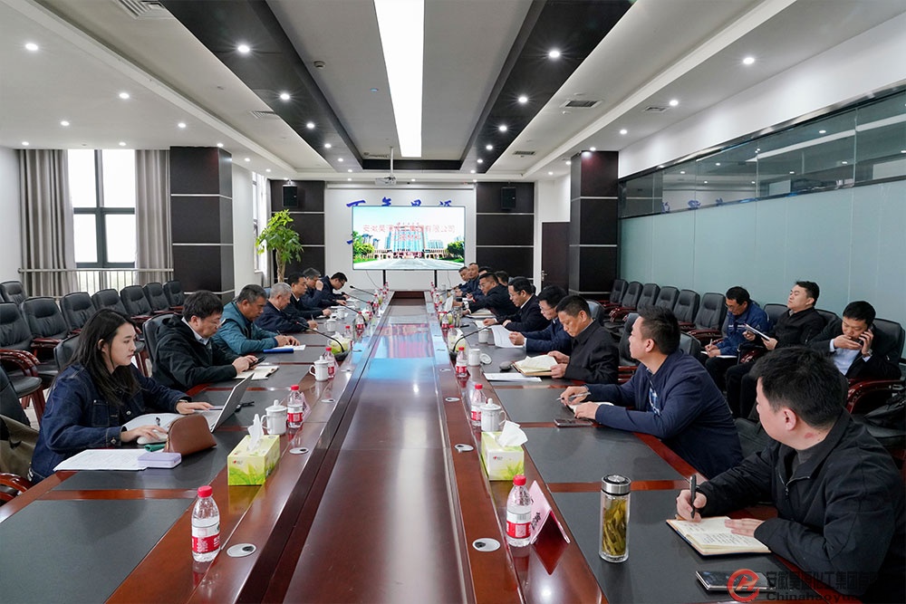在园区会议室,凡殿才详细介绍老厂搬迁情况,并就公司生产经营、项目建设及发展规划等情况进行汇报。