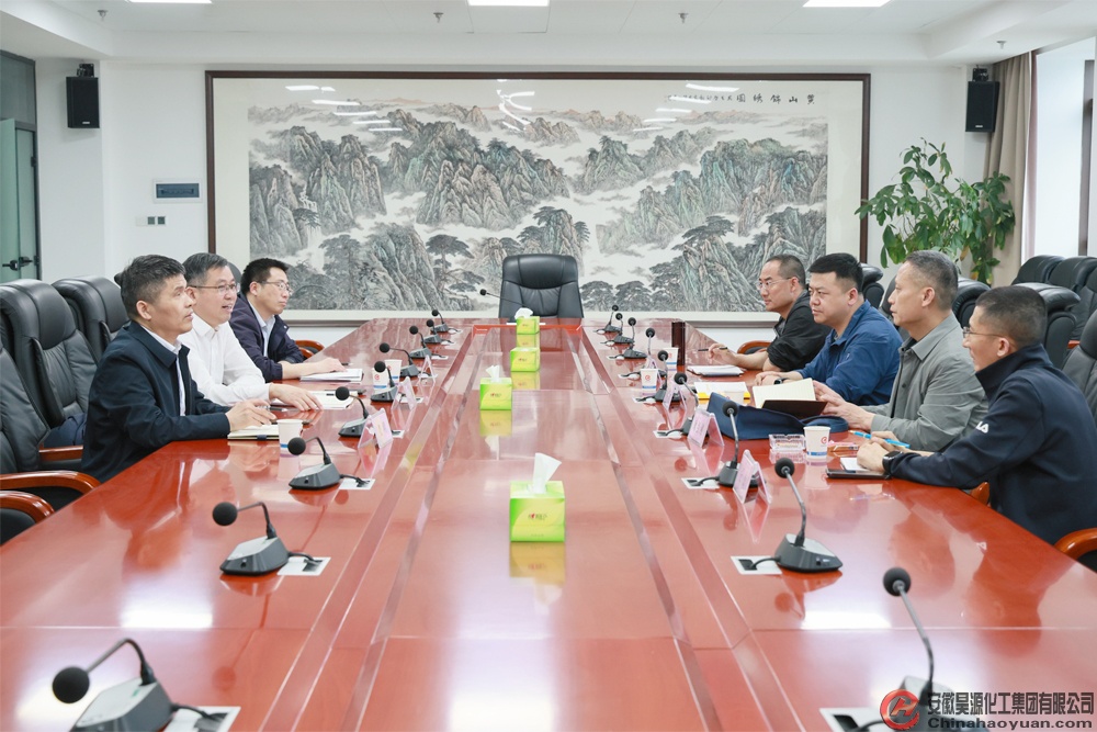 4月21日,丰喜集团副总工程师兼技术部主任宁海文一行到昊源公司座谈交流,加强双方企业间的沟通与合作,共同探索行业发展新思路。公司总经理助理潘家成、企管处处长张明、审计处处长胡从伟陪同。