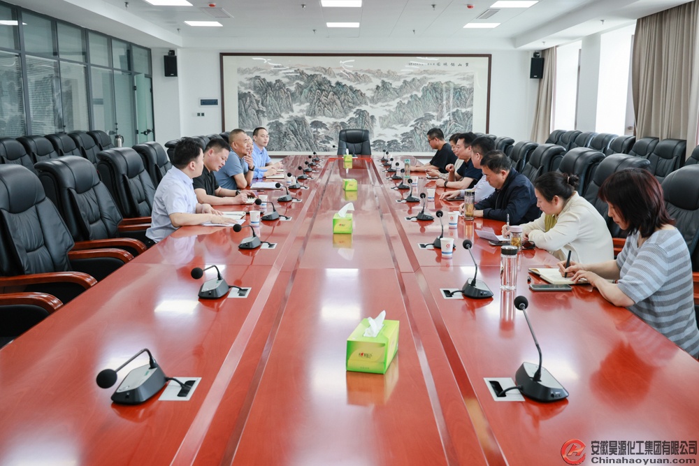 张海生向石体健一行汇报了昊源公司近年来发展历程、产业布局、项目建设、产品产能等情况,及公司在招商引资、招才引智方面的具体举措和取得的成效。通过引进高端人才和先进技术,不断提升企业的核心竞争力。