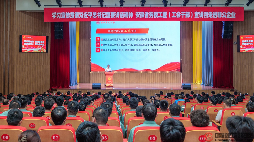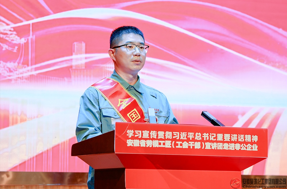7月16日,学习宣传贯彻习近平总书记重要讲话精神安徽省劳模工匠(工会干部)宣讲团活动走进安徽昊源化工集团有限公司,省总工会党组书记、副主席徐发成以《奋斗百年路 启航新征程》为题,围绕学习宣传贯彻习近平总书记在庆祝中华全国总工会成立100周年暨全国劳动模范和先进工作者表彰大会上的重要讲话精神作主旨宣讲。安徽省总工会党组成员、副主席朱颖,阜阳市人大常委会副主任、市总工会主席周拥军,颍东区委书记赵群,昊源公司党委书记、董事长凡殿才出席活动。