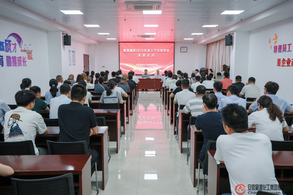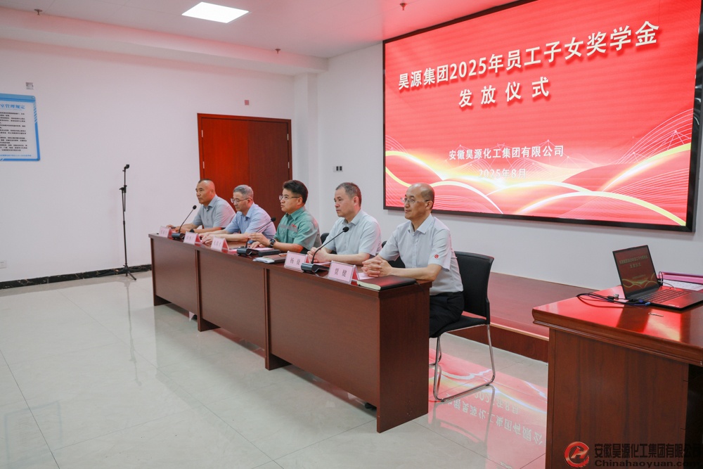 8月17日,昊源公司2025年员工子女奖学金发放仪式在研发中心13楼培训室举行。公司党委书记、董事长凡殿才出席仪式并发表重要讲话,党委副书记、副总经理杨捷宣读获奖同学及家长名单,副总经理、工会主席张海生主持会议,副总经理田怀广、贾健出席会议。