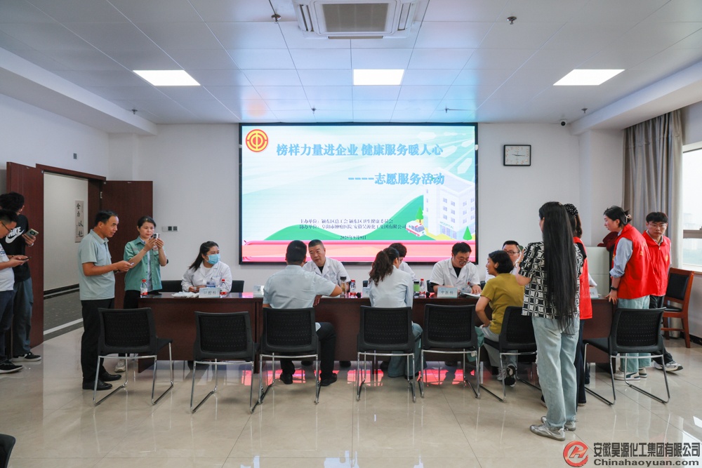 为切实关爱广大职工身心健康,9月9日上午,经公司工会联系,由颍东区总工会联合卫健委组织医疗专家、医生劳模代表,来昊源公司研发中心13楼培训中心开展专场健康义诊活动,为员工送上“零距离”的专属关怀。