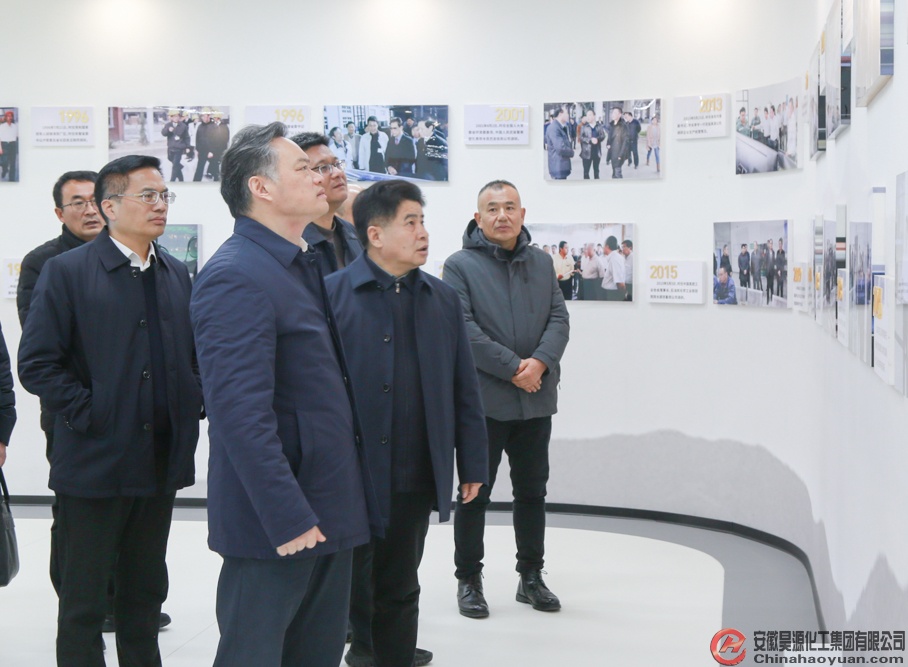 张银军一行首先来到昊源研发中心展厅,通过历史影像资料、图文展板及实物产品陈列,系统了解企业从传统煤化工向高端化、低碳化转型发展历程。