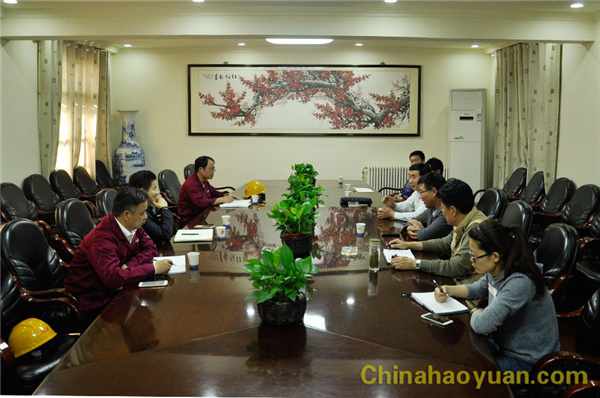 在会议室,凡殿才向李智一行汇报了昊源公司防洪度夏安全措施。他说,昊源公司在夏季到来之前,已对全厂区泄洪地沟进行彻底清理,对排水机泵进行检查、检修,确保夏季暴雨时,厂区内不留积水。同时,昊源公司组织电仪人员对全厂防雷设施进行全面排查,对损坏的防雷设施及时修复,并再次邀请防雷专家重点检查,以保证雷雨天气,生产运行不受影响。对于危化品运输车辆及充装操作,昊源公司制定了规范的作业要求,安全员不定期进行作业执行情况检查,确保危化品充装、运输操作规范,防止高温季节发生事故。凡殿才还就昊源公司职业病防范措施向李智一行作了汇报。
