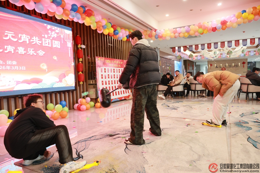 活动现场设置“包汤圆、做灯笼”等互动环节,青年员工们分工协作、默契配合,在揉面、包馅、做灯笼的过程中拉近距离、增进情谊;“踩气球”“尖叫鸡”“幸运砸红包”等趣味游戏轮番登场,现场欢呼声、喝彩声此起彼伏,喜庆祥和的氛围里满是家的温暖。