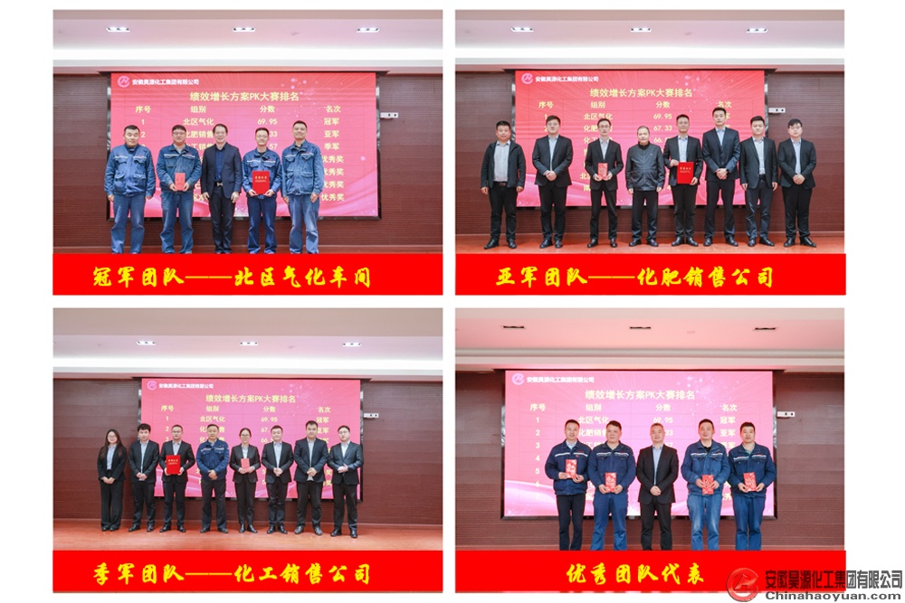 经过评委团严格评审和公正裁决,获得冠军的团队是北区气化车间、获得亚军的团队是化肥销售公司,获得季军的团队是化工销售公司。