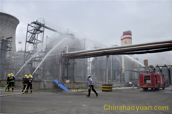 6月20日下午,昊源集团在氨罐区举行液氨泄露反事故演练。市质监局、市环保局、颖东市场监管局等领导出席,并在公司总经理助理吴珍汉、安全副总工刘升陪同下观摩演练。
