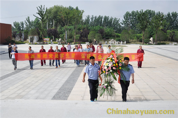 在7月1日即将来临之际,安徽昊源化工集团有限公司党委组织各党支部党员代表缅怀革命先烈,纪念中国共产党建党95周年。 6月29日上午,公司党委办公室副主任滑海东、工会副主席杨波带领公司各党支部党员代表来到阜阳和平公园,缅怀革命烈士,为革命烈士敬献花篮。在革命烈士塑像前,重温入党誓词。大家认真聆听阜阳革命烈士悲壮事迹,感受革命烈士崇高精神。
