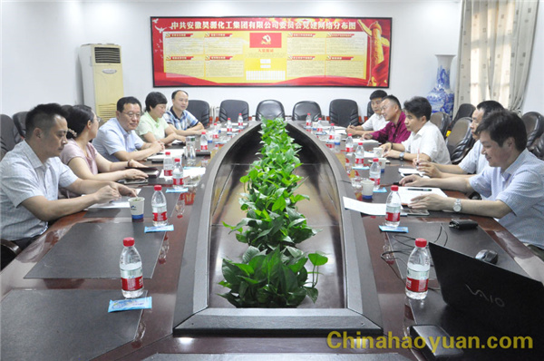 在会议室,凡殿才首先向王好农一行的到来表示欢迎,对市农行长期以来对昊源公司的支持和帮助表示感谢。随后,高玉磊向王好农一行介绍了昊源公司的生产经营、发展规划、阜阳煤基新材料产业园区项目建设情况。针对年产26万吨苯乙烯、6万吨环氧乙烷及其配套工程项目,高玉磊从项目选址、投资环境、技术方案、项目融资、市场前景等方面作了详细解说。
