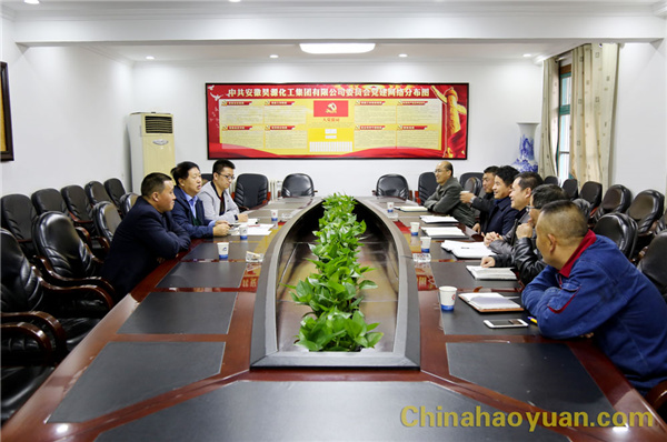 凡殿才向贾国华一行汇报了昊源公司近期生产经营情况,阜阳煤基新材料产业园区规划、建设进度,昊源公司新产品开发、科技创新等。