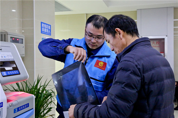 目前,在市人民医院城南新区门诊设置有10余台自助机,不但可以挂号,还可以缴费,查询。“您在这里刷一下身份证,就会出来一张就诊卡,您划钱进去,挂个号……”志愿者张海华在一台自助机前一步步地指导患者操作。“现在看病就诊都智能化了,但是有很多患者并不会使用。”张海华是安徽昊源化工集团有限公司的一名职工,这些天只要有空他就会来医院义务服务,为此,他牺牲了自己的休息时间。“最忙的时候,都不敢多喝水。因为那不是一个人一个人地来问,而是一群人蜂拥上前来咨询。”