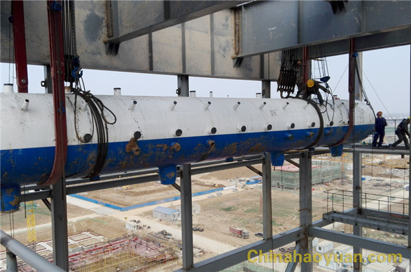 在昊源公司口孜园区项目锅炉组的不断努力下,经过四个多月的紧张施工,锅炉主体框架已基本安装到位。2017年3月11日,在锅炉项目组的监管下,施工单位密切配合,按照项目进度如期对汽包进行吊装。汽包于上午9时许开始吊装,经过数小时忙碌,于下午15时许一次吊装成功。汽包就位后,水冷壁、旋风分离器等相关设备、部件的安装随后进行,整个安装工作面全面展开。锅炉工段是口孜园区项目最早开车运行的工段,锅炉项目组全体成员克服困难,确保项目如期完工。