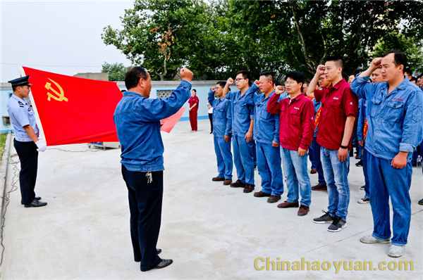 在“七一”前夕,昊源公司又有7位同志被吸收入党,已成为中国共产党预备党员。在6月18日的公司升旗仪式上,举行了中国共产党预备党员入党宣誓仪式,党纪办主任滑海东同志领读誓词宣誓,航天炉党支部王阿伟同志代表宣誓的预备党员发言。