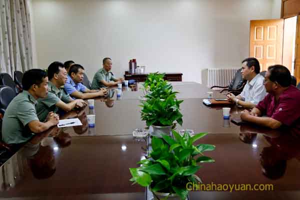 杨捷就市军分区及颍东人武部多年来对昊源公司武装、民兵工作的支持表示感谢,并就公司武装民兵工作与龚辉进行深入交流。
