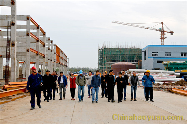 在昊源集团阜阳煤基新材料产业园区项目建设现场,凡殿才向华东理工大学EMBA十一班精英介绍了园区项目建设情况,一起参观了园区项目施工工地。