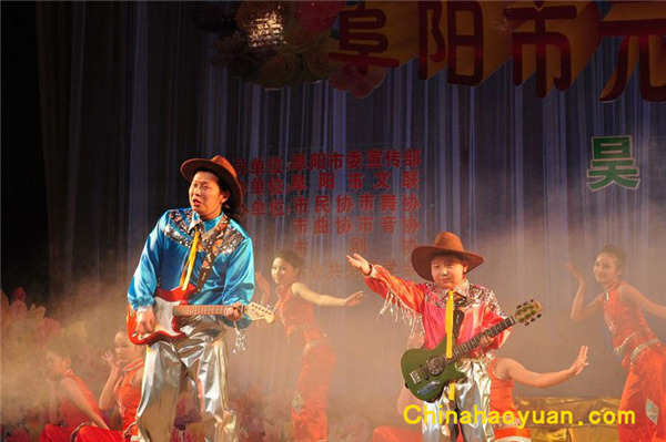 2009年12月31日晚19:30分,阜阳大戏院里座无虚席,到处洋溢着浓浓的春意。祥和喜庆的气氛充满整个晚会现场,花团锦簇,歌海如潮。由阜阳市文联主办,安徽昊源化工集团有限公司冠名,阜阳市民协、市舞协、市曲协、市音协、市剧协,以及市公共关系学会等多家单位共同承办的名为“昊源之春”2010年阜阳市元旦联欢晚会在这里隆重举行。晚会开始,安徽昊源化工集团有限公司副总经理、工会主席高玉磊作新年致辞。晚会上,节目内容丰富,种类繁多,歌舞、相声、小品、武术、戏曲,尤其一些具有代表性的地方民间歌舞花鼓灯艺术,变脸、武术等成为晚会的一大亮点,不时博得场下观众的阵阵掌声、喝彩声••••••