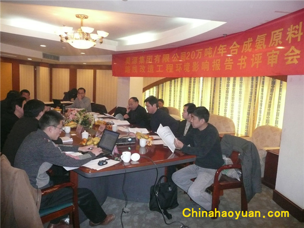 2009年12月22日,由安徽省环境保护厅组织的安徽昊源化工集团有限公司《20万吨/年合成氨原料路线改造工程项目环境影响报告书》专家评审会,在阜阳市白金汉宫大酒店六楼会议室隆重举行。参加本项目环境影响报告书评审的单位有安徽省环境保护厅、安徽省环境工程评估中心、安徽省环境科学研究院(环评单位)、阜阳市环境保护局、兰州航天石化工程有限公司(设计单位)、安徽昊源化工集团有限公司。会议邀请7位省市环境保护专家组成评审团对该项目进行评审。