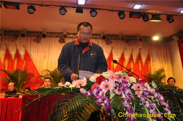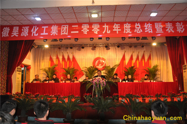 阜阳市经委副主任左会同、阜阳市化工协会会长李智、市总工会副主席陈华东等领导出席了总结表彰大会。大会由公司党委副书记李继忠主持,公司党委书记、董事长饶金铎作了题为“降成本、调结构、重创新、促转型、为打造资源节约型环境友好型的百年昊源而奋斗”的报告。报告主要分为两部分,一是对2009年的工作进行全面的总结。2009年是公司面对金融危机攻坚克难的一年,也是公司降成本、调结构、大干快上的一年。在这不平凡的一年中,祖国母亲迎来了60华诞,让我们看到了祖国60年来的繁荣昌盛和国防力量的日益强大。一年来,我国的经济形势也发生着深刻的变化。面对金融危机带来的风险和机遇,公司党委、董事会带领全体员工,贯彻落实国家“保增长、保民生、促发展”的战略部署,坚守“不减员、不降薪”的庄严承诺,同心同德,艰苦奋斗,通过深化管理、节能降耗和小改小革,企业保持了快速、健康、和谐发展的良好势头。二是对2010年工作进行了全面部署,明确提出了继续贯彻执行“安全为天”的指导思想,以“12345”工作措施为主线,确保公司实现安全发展。就2010年的全国形势而言,行业“洗牌”在即,市场竞争升级,我们要积极行动起来,在经营模式、业务模式、营销推广、成本管理上推陈出新,开创我们昊源的又一个“春天”。